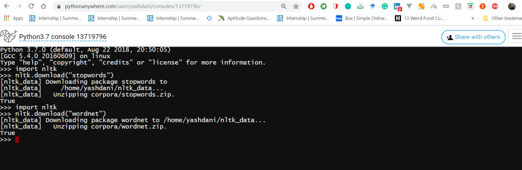 - An issue with the NLTK import in pythonanywhere.