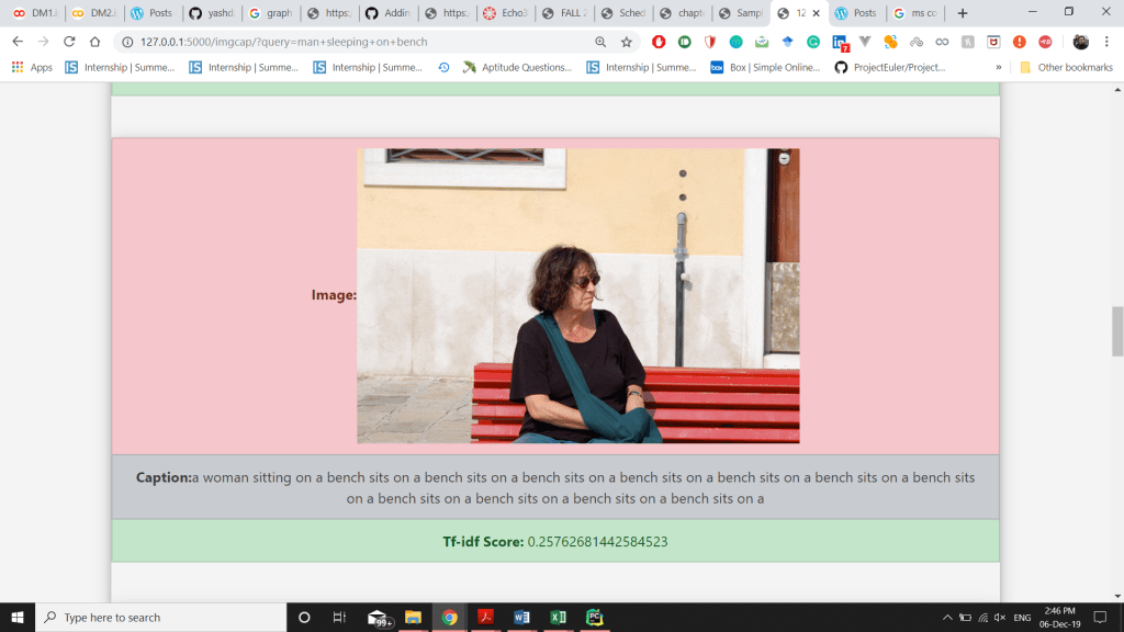- Tried to implement synonyms feature using NLTK wordnet in my system on localhost, the implementation was not very accurate due to which I was getting completely irrelevant results.